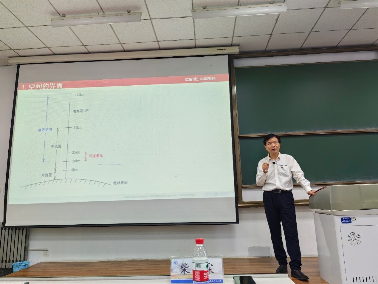 课堂上,柴霖校友给同学们深入浅出地介绍了全面的航天测控相关专业知识,包括空间界面、航天系统组成、中国航天运管、发射基地以及航天电子的概念,随后从通信系统、发展历程、我国测控基地三个方面介绍了航天测控的基础知识。