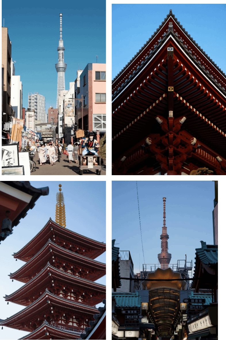 在带队老师的带领下,团队成员于东京拜访了东京大学(The University of Tokyo)与庆应义塾大学(Keio University),参观了历史悠久的浅草寺、新宿御苑与皇居东御苑。登上东京都厅展望室于晴空塔,俯瞰东京都市景色,在秋叶原圣地巡礼,体验 ACG 文化,漫步在夜晚涩谷街头,体验“世界最繁华十字路口”。