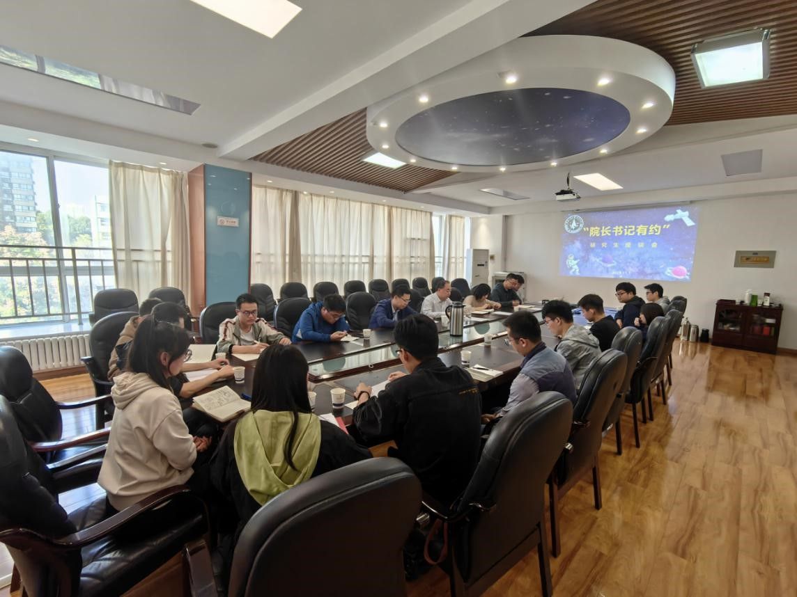 黄越书记对本次获得国家奖学金的研究生表示祝贺,希望他们再接再厉,取得更好的成绩,表示学院会认真研究同学们提出的意见建议,尽快拿出工作方案,发挥学院各研究所、各党支部的积极作用,为研究生创造良好的科研、学习和生活环境。