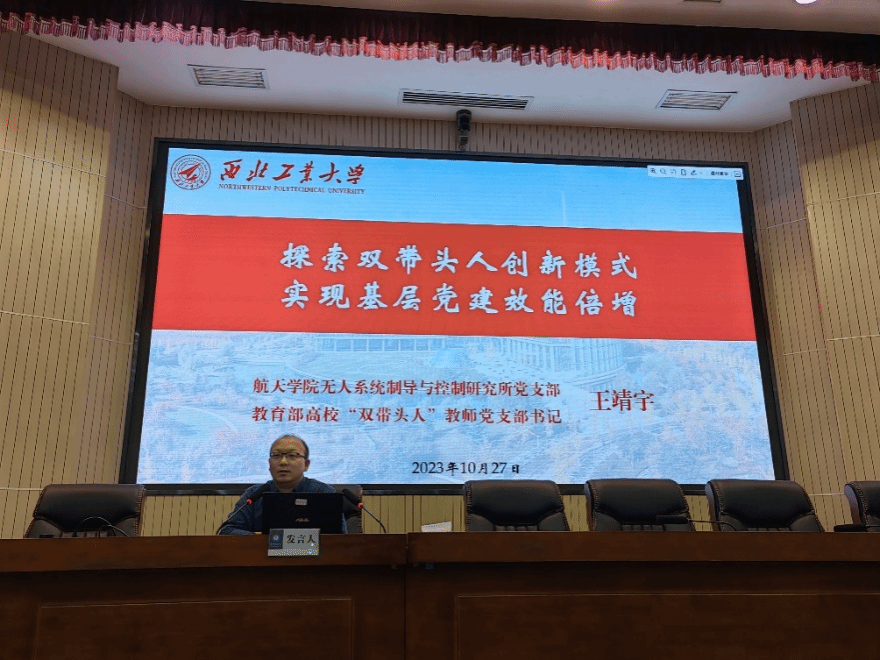 10月27日,在“全国高校教师党支部书记‘双带头人’高级研修班”的“学员论坛”上,王靖宇同志以《探索“双带头人”创新模式,实现基层党建效能倍增》为主题,就高校教师党支部工作探索与实践经验进行了专题报告,详细介绍了西北工业大学的历史沿革、银河娱乐场