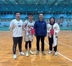 党委副书记韩冬和硕士生辅导员鄢德堃到比赛现场为决赛加油。赛后,韩冬副书记为本次篮球联赛获奖队伍颁奖。