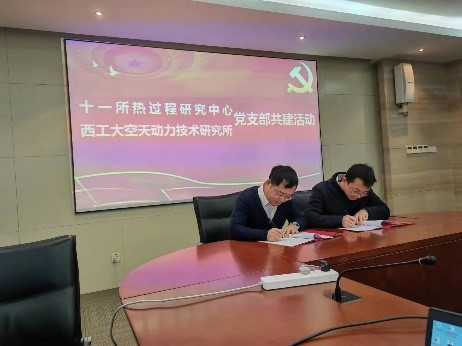 空天动力技术研究所党支部与航天科技六院十一所热过程研究中心党支部,在液体火箭发动机技术重点实验室联合举行了主题党日活动暨支部共建交流活动。动力所党支部书记吕翔、热过程党支部书记陈鹏飞代表党支部签订了支部联合共建协议。