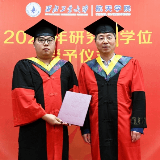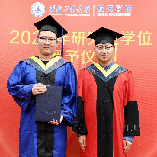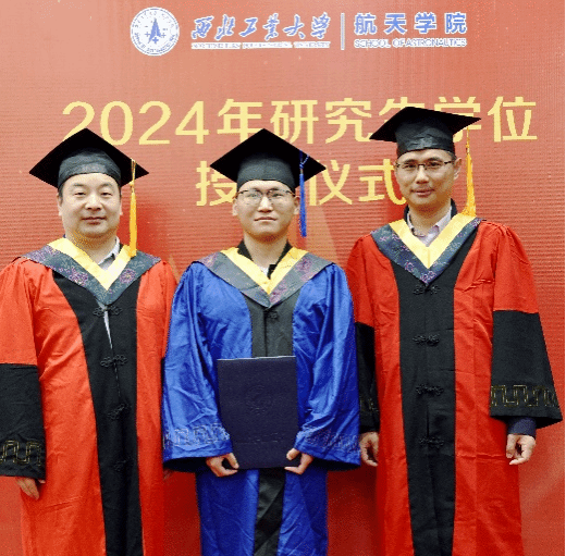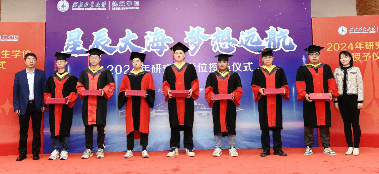 毕业典礼在《西北工业大学校歌》合唱声中结束。典礼后,院长黄攀峰及各研究所所长,书记为毕业生授予学位并合影。