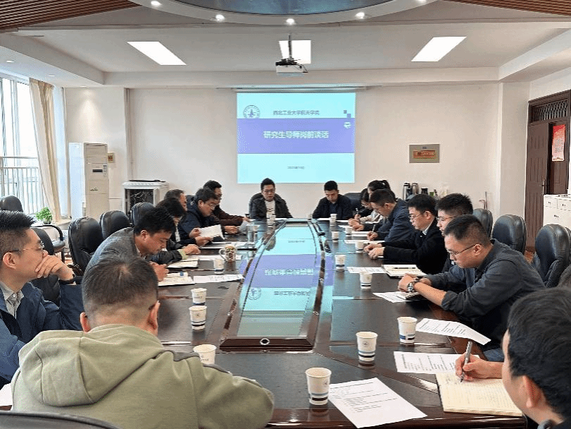 执行院长岳晓奎、党委书记黄越、副院长宁昕、优秀导师代表严启龙以及2023年新认定的13位博士生导师、9位硕士生导师参加了本次岗前谈话会。会议由宁昕主持。