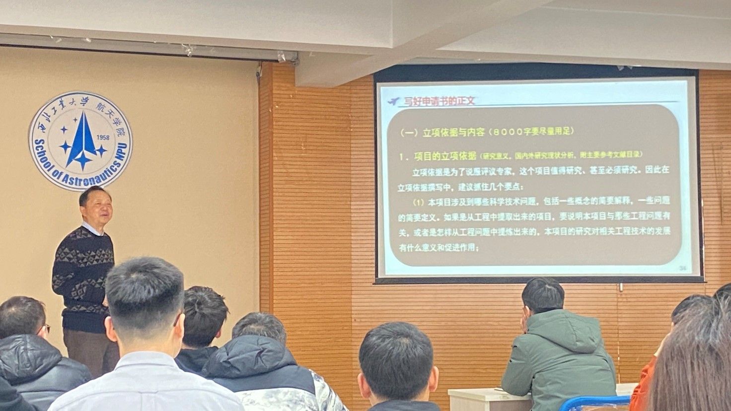 组织召开了国家自然科学基金项目申报辅导系列活动之基金申请书撰写辅导会。会议特邀航空学院资深国基金项目专家杨智春教授主讲,银河娱乐场