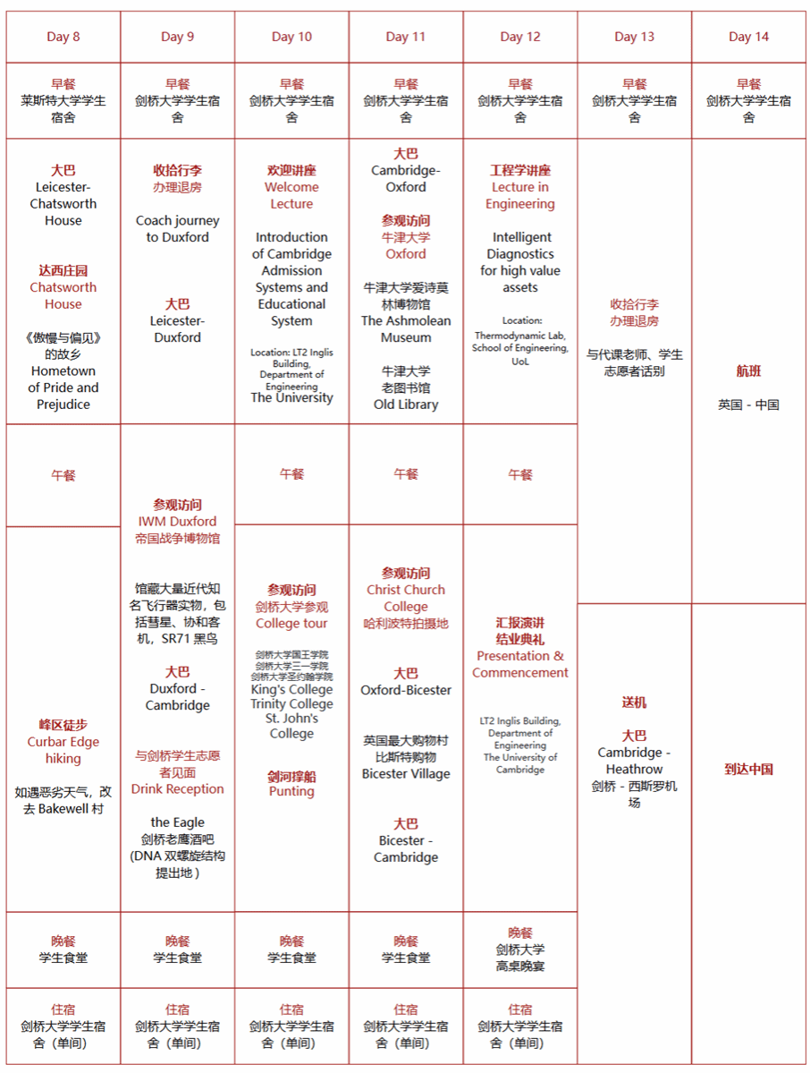 29800人民币/人,费用包含在英国期间的所有费用,包括:学费、住宿费、交通费用、三餐、导游费用、景点门票。费用不包含:中国境内交通费用,签证费用,往返英国机票,国际保险。