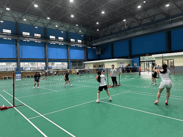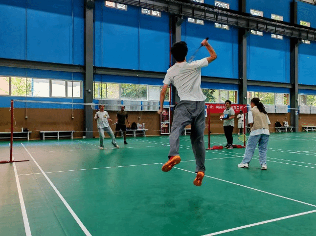 羽毛球比赛设置了男子双打、女子双打和男女混合双打三个赛道,每个赛道都进行了多轮激烈的比拼。比赛采用15分三局两胜制,选手们在赛场上展现了优雅的动作和迅捷的反应,吸引了众多观众的目光。