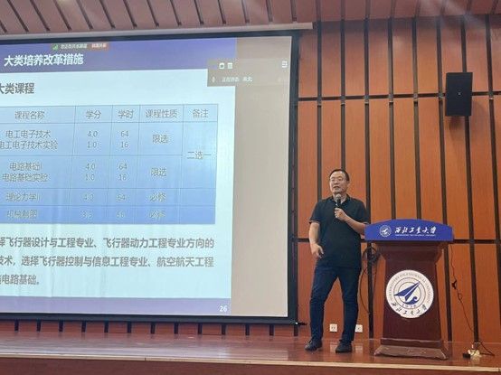 之后,学院副院长孟中杰就2024级航空航天大类(航天)培养方案进行解读。他从培养方案概况、指导性教学计划、大类培养改革措施等三方面进行了细致分析。他提到,作为西工大航天学子,同学们要以高标准、严要求对待学业,为后续发展奠定坚实基础。