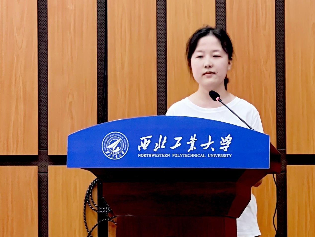 随后,新生代表蔡欣璐发言。她提出了三点期望与同学们共勉:一是传承报国基因,做新时代“总师”传人;二是拓宽视野格局,紧扣“总师型”人才目标;勇于担当作为,坚守“为国铸剑”使命。