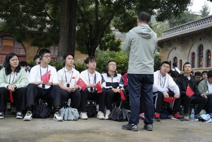 而后,同学们来到鲁艺旧址。这座由教堂改造的学校,是当年有志之士学习文学与艺术的圣地。同学们参观鲁艺学生的宿舍与教室,惊叹于前辈的顽强意志与乐观精神。鲁艺院里,蒙蒙雨中,延安大学的老师为同学们带来一堂别开生面的党课。没有教室,没有黑板,只有小马扎和同学们求知的心,一如百年之前。同学们学习《黄河大合唱》的创作历程,感受音乐中蓬勃的爱国热情。课末,同学们移步教堂内,在当年中共六大的会场里,唱响《黄河大合唱》,唱出对前辈的敬意,唱出拳拳爱国之心。